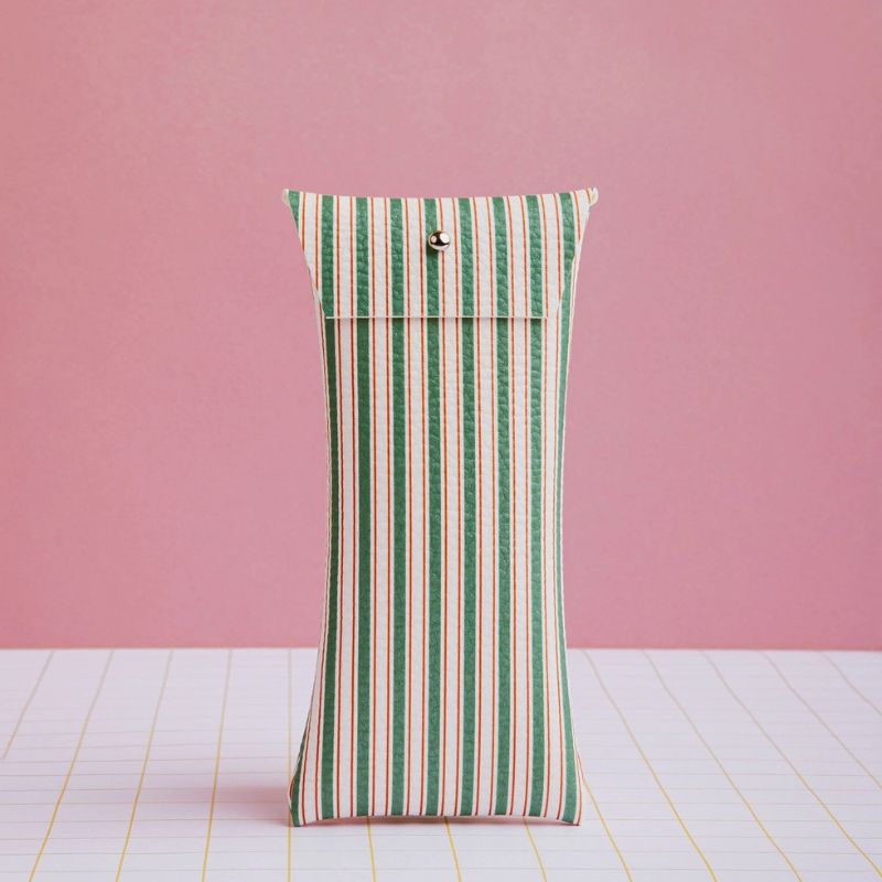 Ontdek de perfecte combinatie van vakmanschap en stijl met deze Handgemaakt brillenhoes groen gestreepte brillenkoker van Ecke.